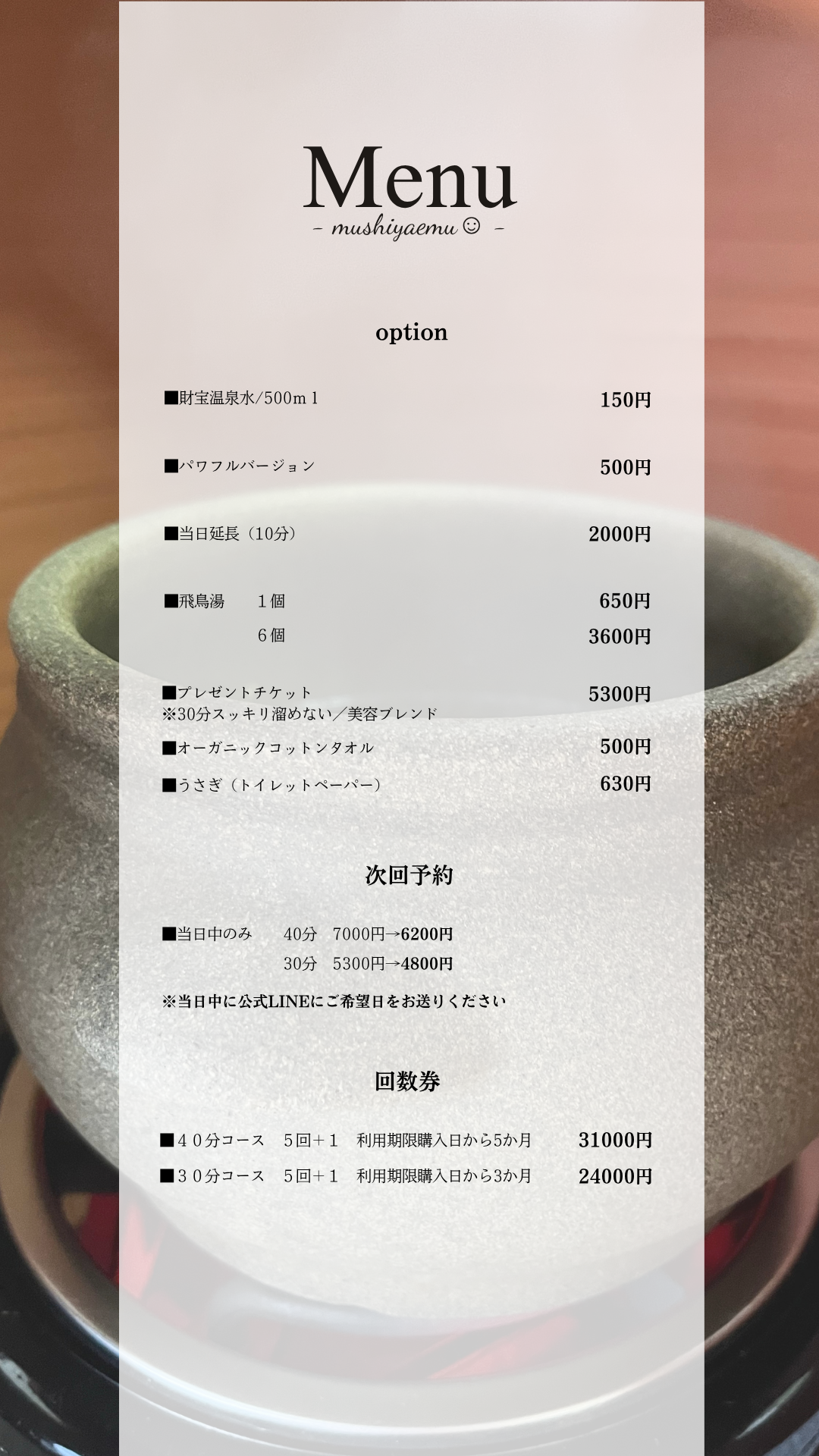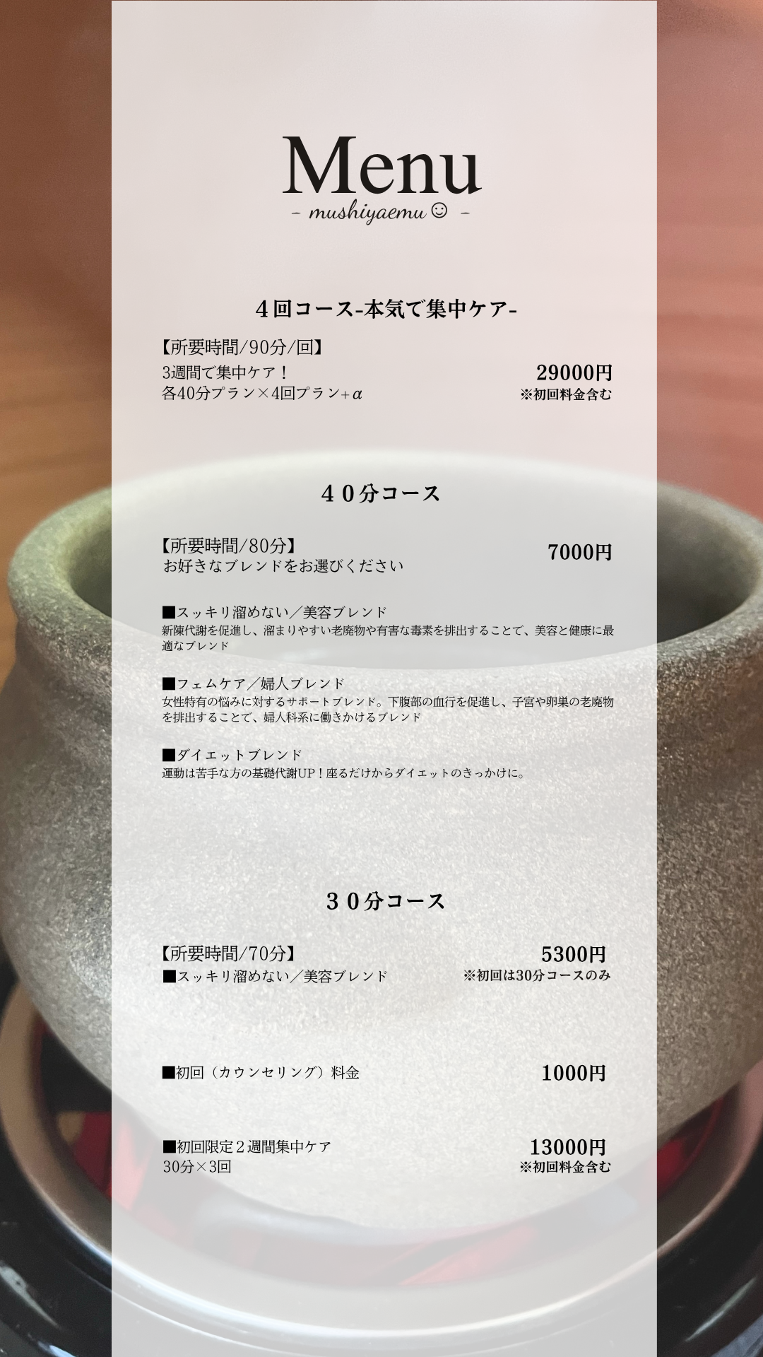 ようこそ 。黄土100%漢方よもぎ蒸しの蒸舎笑む☺︎です。 JR市川駅北口徒歩3分 完全予約制 TEL 050-3188-9150 ご予約•お問い合わせは、LINE(@062cjfiz)からも承っています。 ↓↓ページ下の【友だち追加】からもどうぞ‼️